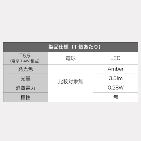 T6.5 台座付 Amber (電球1.4W相当) 1個入り