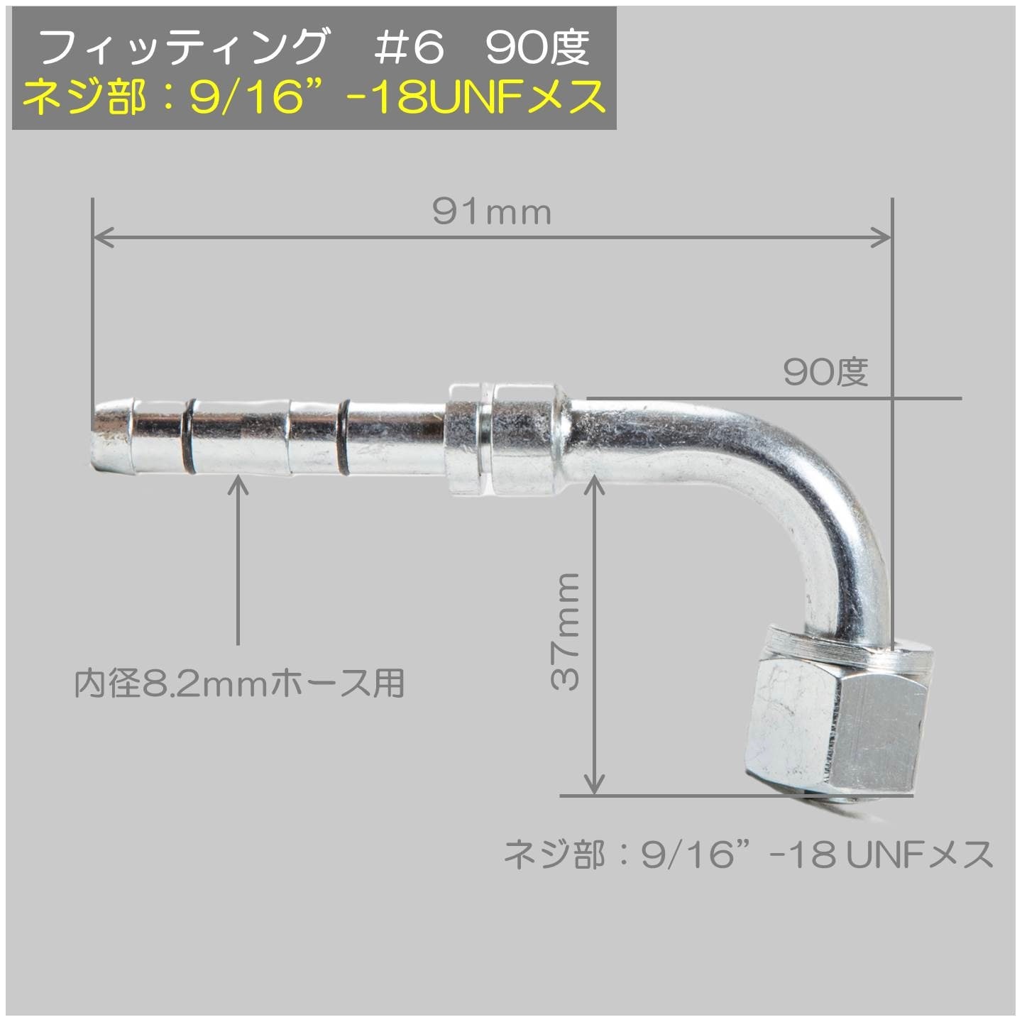フィッティング #6 90度 9/16”-18UNFメス